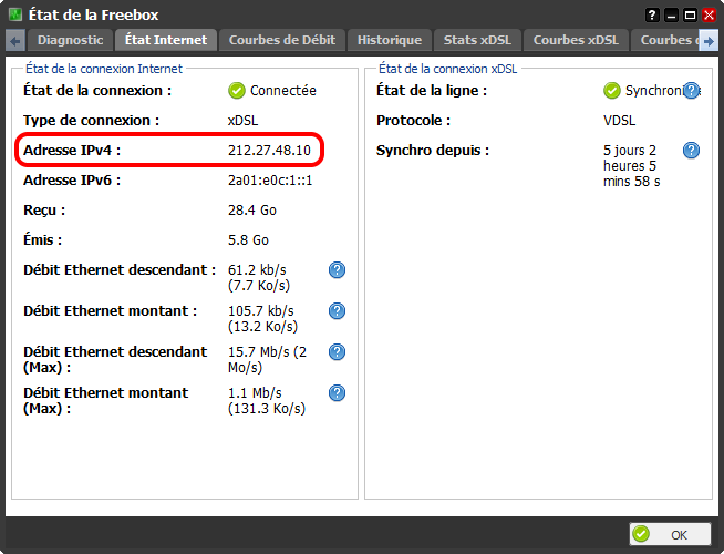 - 1.1 : Ajout d'un bouton "Tester" des paramètres dans les options